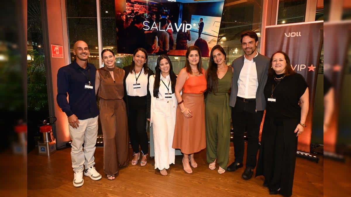 Bianca Miranda, da VOLL, entre Luiz Santana e Denner Costa, da Meliá