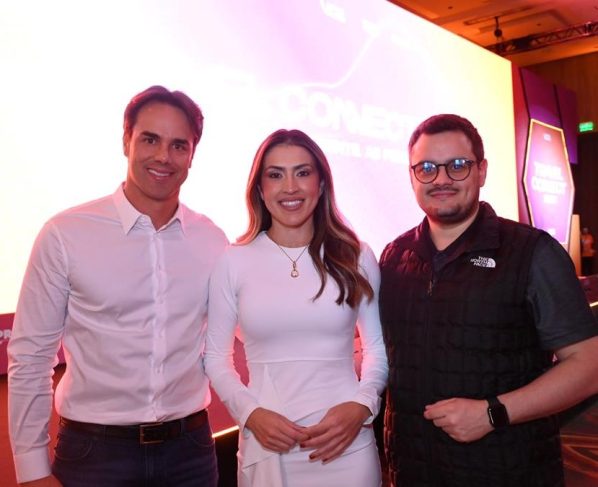 Erivania Marques, do Grupo Soma, com Felipe da Silva e Wanessa Kague, do Charlie