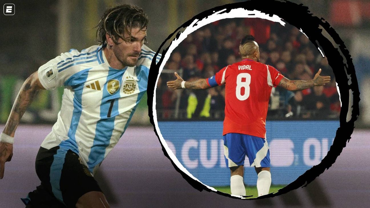 • Vidal faz duelo à parte com De Paul em Chile x Argentina