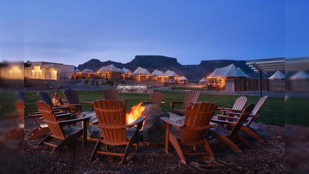 - Zion Wildflower Resort, WorldHotels (Virgin, Utah) – Localizado a poucos minutos da entrada do Parque Nacional de Zion, este retiro de glamping de luxo combina a imponente paisagem de rochas vermelhas do sul de Utah com confortos refinados, oferecendo acomodações em estilo safári e fácil acesso a trilhas, observação de estrelas e aventuras guiadas pelo deserto.